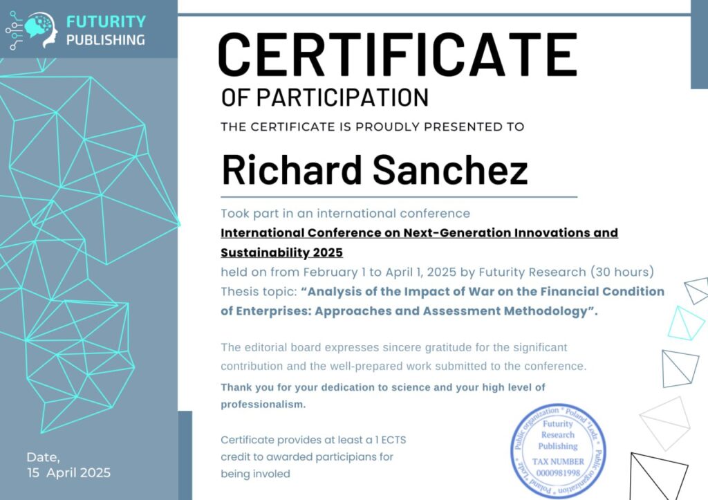 Each conference participant receives an official certificate of international communication from Futurity Research Publishing
