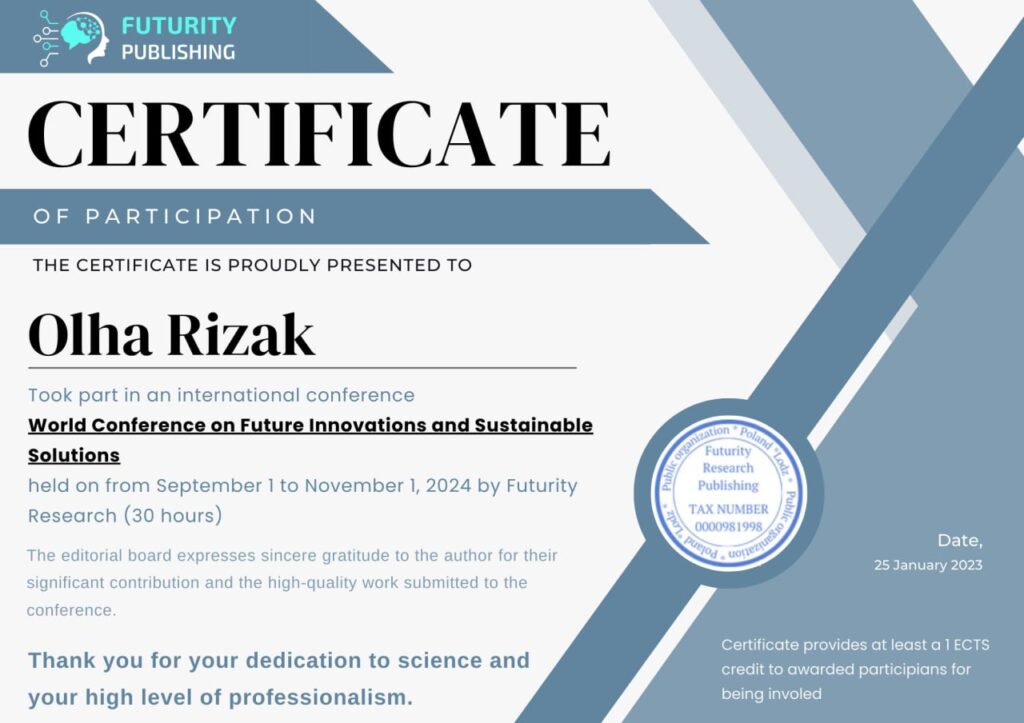 If you have any questions regarding participation in the international conference, you can contact us using the contacts indicated below: conference@futurity-publishing.com or WhatsApp +38 066 737 97 55.